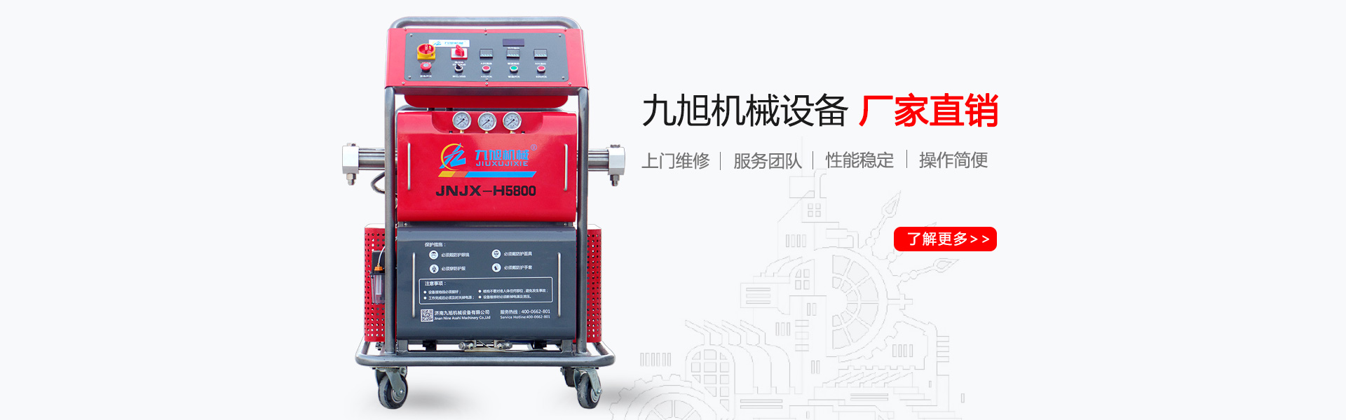 山東九旭機(jī)械科技有限公司歷經(jīng)十幾年的發(fā)展,已成長為聚氨酯設(shè)備行業(yè)頗具實(shí)力的設(shè)備制造廠家之一。企業(yè)主要產(chǎn)品:聚氨酯噴涂機(jī)、聚氨酯發(fā)泡機(jī)、聚氨酯澆注機(jī)、聚脲噴涂機(jī)等,關(guān)于設(shè)備配件(聚氨酯高壓噴槍、槍嘴、加熱管道、料塊、摩擦副、增壓泵、混合式、提料泵等)也是堅(jiān)持最好的質(zhì)量服務(wù)用戶,并承接:外墻保溫、冷庫保溫發(fā)泡等工程...